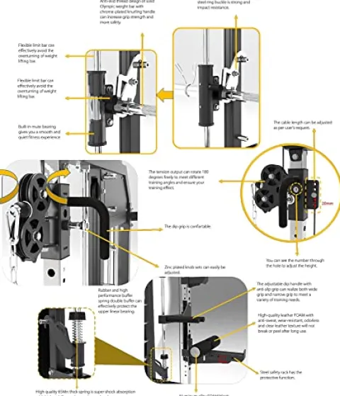 - SAFE TO USE AND BIG SIZE – You will love this big size Smith Machine workout equipment for home workouts, your all-time workout buddy for life! The universal gym equipment features Safe and Super Sturdy Machine for 24/7 Workout by Different Exercisers with assembled Dimensions:( Main Rack Only) Width 66”x Length 77”x Height 86” and Gross Weight: 980 Lbs. (21 Packages), Max Weight Capacity (Including User Weight) 600 lb.