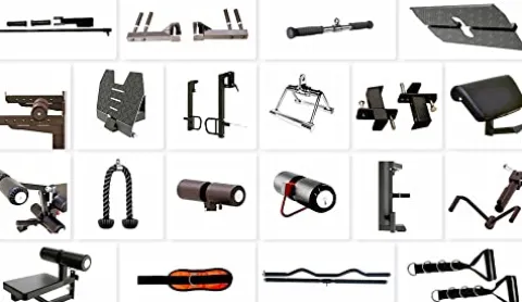 - TONE ALL MAJOR MUSCLES – This all-in-one, Hercules EX offers everything you need to strengthen all major muscle groups. Our strength training equipment includes: V-Handle, Strap Handle, Ankle Strap, Triceps Pull Down Rope, Push Bar, Grips, Leg Press Attachments, Push & Sit Up Attachments, Arm Workout Tube, Knurl Bar, Straight Bar, Functional Training Bar, Triceps Bar, Crossovers Handles, Rotating Landmine Attachment. Bar Storage and Hooks, 400 Lbs. Weight Stacks. (24 attachments included)