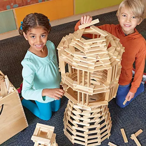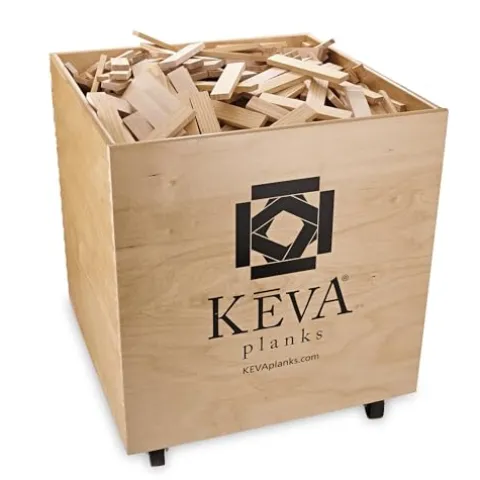 - CLASSROOM SIZED: KEVA planks make a fantastic group activity; a creative toy for boys and girls! This giant set is designed for classroom use, with a wood roller bin for storage. Kids practice playing together as they build.