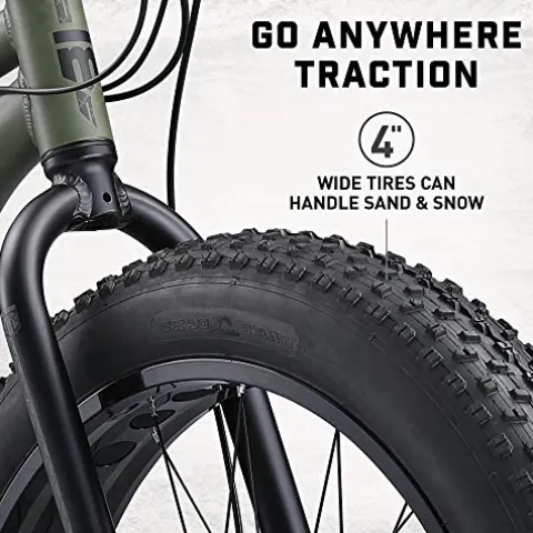 - 26 x 4 inch knobby mountain fat tires provide excellent stopping power and tons of traction in sand and snow