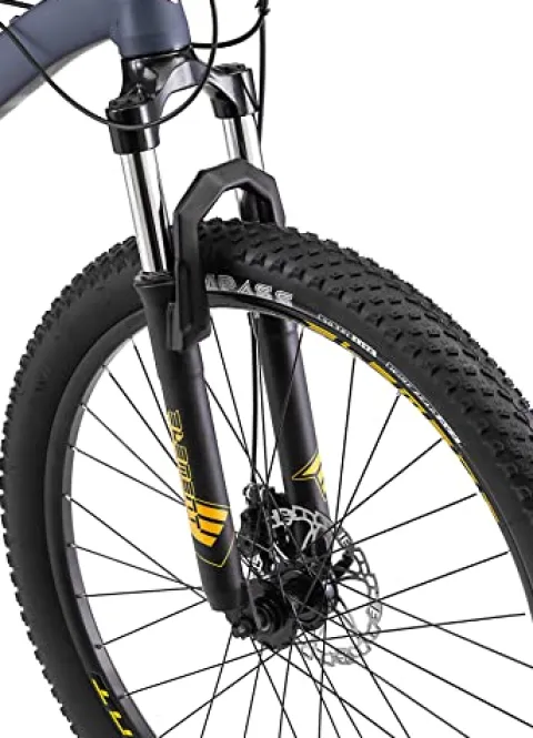 - 2.6-inch wide knobby mountain tires provide extra grip and stability paired with alloy double wall rims that add lightweight strength