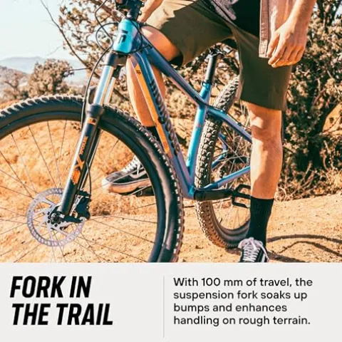 - Lightweight aluminum frame features internal cable routing for a sleek look. 100 mm travel fork helps to absorb bumps in the trail.