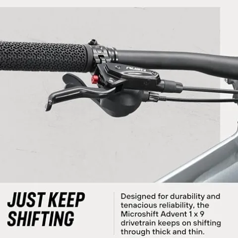 - 9-speed drivetrain with trigger shifters provides smooth gear changes.