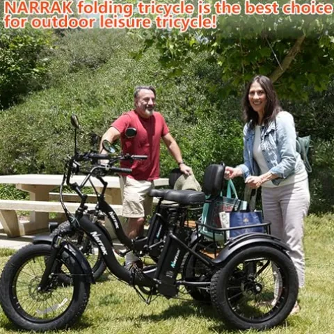 Experience unparalleled freedom and stability with the Narrak Electric Tricycle for Adults, equipped with a powerful 750W motor, peaking at 1350W. Designed for both convenience and performance, this trike boasts a rear central hub motor with differential, ensuring smooth turns and enhanced maneuverability. With its UL Certified 48V 13Ah battery, explore up to 50 miles per charge, all while enjoying the safety and reliability of hydraulic brakes. The intuitive Narrak LCD M5 display keeps you informed, while the 20″x4″ fat tires and foldable step-through design offer comfort and easy storage. Perfect for errands or leisurely rides, this trike combines a durable aluminum frame supporting up to 290 lbs with practical features like large capacity baskets and a hydraulic parking brake system. With easy assembly and local support, the Narrak Electric Trike is your dependable companion for everyday adventures.