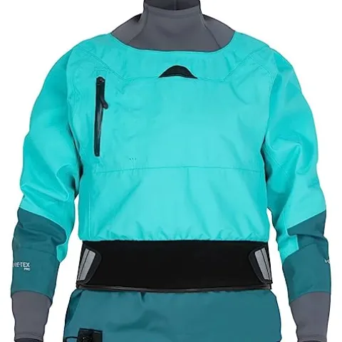 The NRS Women’s Rev Gore-TEX® Pro Kayaking Dry Top in Mediterranea/Aqua color is a top-of-the-line choice for serious paddlers. Crafted with 3-Layer GORE-TEX Pro technology, this dry top offers exceptional durability, waterproofing, windproofing, and breathability. Designed with a Paddler’s Cut for optimal athletic performance and layering comfort, it features GlideSkin neoprene overcuffs to protect the latex neck and wrist gaskets. The volcano-style overcuffs on the wrists minimize water contact with the gaskets, while mesh holes under the wrists and neck ensure efficient water drainage. With an inner skirt that mates with a sprayskirt and a PFD-friendly splashproof chest pocket, this dry top is the perfect companion for high-volume waters and demanding kayaking adventures.
