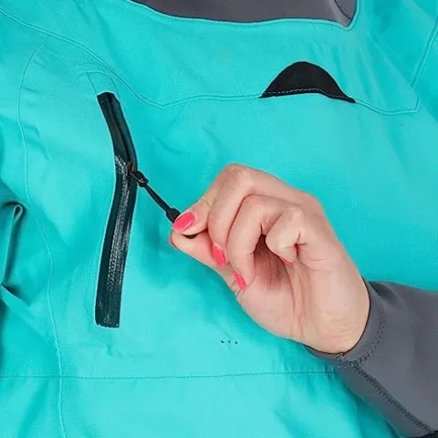 - Inner skirt with dual-adjust neoprene waist mates with a sprayskirt. Features one PFD-friendly splashproof, zippered chest pocket.