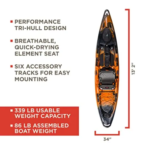 - Engineered above and below the waterline for optimal fishing, the Old Town Sportsman BigWater 132 kayak’s performance tri-hull design is designed for the paddling efficiency essential in more open water and the stability required when you stand.