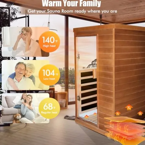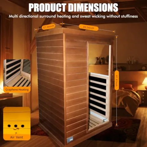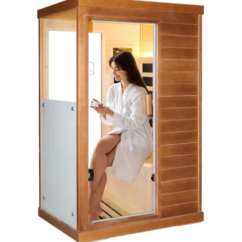 - Good materials:This gorgeous sauna is constructed with high-quality Natural Canadian Hemlock wood. A beautiful and durable wood that serves as an excellent heat insulator. Its glass is tempered for reliable longevity. The intelligent entertainment system is equipped with two high-quality speakers.Small size, low space requirements. Convenient and worry free. Bluetooth code: 0000