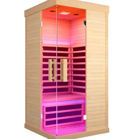 Elevate your wellness routine with the OUTEXER Indoor Far Infrared Sauna, crafted from premium Canadian Hemlock for exceptional durability and style. This single-person sauna is designed for your comfort, featuring a 33.5 x 33.5 x 68.9-inch space complete with cup holders, towel racks, and a sleek glass design. Enjoy the therapeutic benefits of far infrared technology with low-EMF heating panels, reaching up to 149°F. The sauna’s intelligent entertainment system, featuring two high-quality speakers and a seven-color light therapy feature, ensures a relaxing, immersive experience. Safety is paramount with features like dry burn protection and automatic power-off, while the user-friendly control panel allows easy temperature and timer adjustments. With 24-hour after-sales support and simple maintenance, this sauna offers a luxurious escape in the comfort of your home, transforming any space into a personal spa sanctuary.
