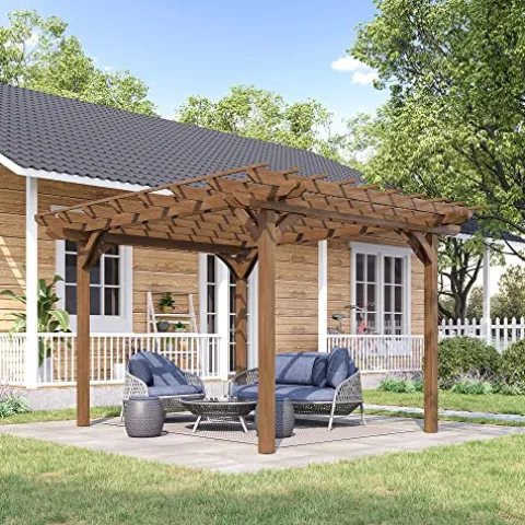 Enhance your outdoor space with the Outsunny 12′ x 10′ Outdoor Pergola, a beautifully designed wood gazebo that combines functionality and style. Crafted from durable paint-protected fir wood, this pergola is built to withstand the elements while providing ample support for climbing plants like grapes, ivy, and morning glories. Its triple-level canopy offers plenty of room for vines to flourish, creating a lush, shaded retreat perfect for gatherings or quiet moments of relaxation. With dimensions of 143.75″ L x 120″ W x 88.5″ H, it serves as an elegant centerpiece for your garden, patio, or backyard. Easy to assemble and equipped with expansion screws for secure mounting, this pergola is the ideal addition to elevate your outdoor living experience year-round.