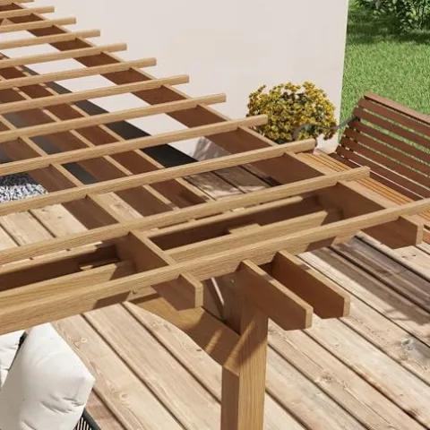 - Year-Round Pergola: Intended to be a permanent structure, our garden pergola is made to endure outdoor conditions year-round. It’s made of paint-protected fir wood for water resistance. Included are a set of expansion screws and L-plates to mount it to solid ground such as concrete.