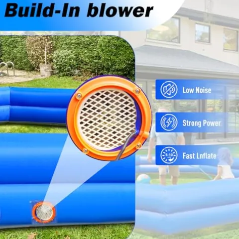 - 【Effortless Setup】Featuring a built-in powerful blower, there’s no need for an external fan—eliminating the risk of the blower being knocked over during intense matches. The pit inflates in just a few minutes and stays continuously inflated during use (ensure the zipper is secured before inflating). The built-in blower operates quietly with minimal noise, allowing you to fully enjoy the Gaga game without distractions.