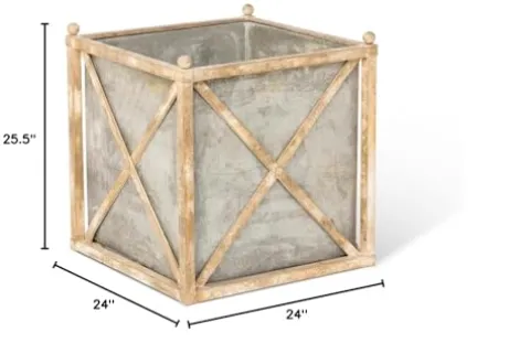 - As though it were straight from the garden of a grand estate, the old world frame and tin liner of this large planter can be used to showcase a wide variety of ornamental trees and shrubs.Features