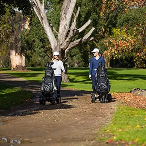 - [POWERFUL TWIN 230 WATT MOTORS] – This electric golf push cart with remote features twin 230-watt motors that offer a smooth and whisper-quiet ride on the course. With the ability to play up to 36 holes in a day, you’ll feel your best and play your best.