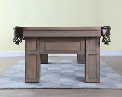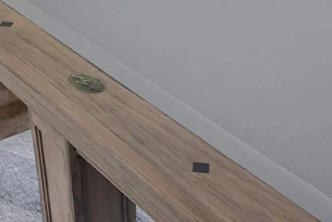 Enhance your game room with the Playcraft Cooper Creek 8′ Slate Pool Table. Inspired by the Arts and Crafts design style, this table features proportionally large legs and lower cabinet aprons for a classic look. The lower cabinet includes a convenient storage drawer with dedicated spaces for cue sticks, billiard ball sets, and various accessories. The premium 3-piece slate system ensures a smooth playing surface, meticulously honed to perfection with leveling hardware for precise adjustments. Choose from 21 cloth colors to personalize your table. While professional installation is recommended and not included, this pool table comes with a 5-year warranty against manufacturing defects, making it a durable and stylish addition to any game room. Playing equipment is sold separately.