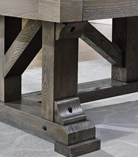 Enhance your game room with the Playcraft Cross Creek 7′ Slate Pool Table in Pewter. This stunning piece features a timber frame design with hand finishing for a distinctive old world style. The 3-piece premium slate system ensures a smooth playing surface, with leveling hardware for precise adjustments. Choose from 25 cloth colors to customize your table, and enjoy peace of mind with a 5-year warranty against manufacturing defects. Available in 7’ and 8’ sizes, this pool table offers the perfect blend of elegance and functionality for endless entertainment. Professional installation is recommended to complete your game room setup.