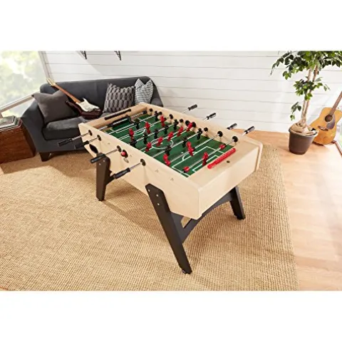 Enhance your game room with the Playcraft Milan – European Style Foosball Table in Light Maple. Featuring durable 1.40” thick side aprons, a metal striker plate in the goal, and counterbalanced robot style men with tournament-shaped feet, this foosball table offers a premium playing experience. The chrome-plated telescoping steel rods with men factory molded around internal steel supports ensure smooth and precise gameplay. Additionally, adjustable leg levelers provide stability on any surface. Elevate your foosball skills and enjoy hours of competitive fun with this high-quality and stylish foosball table from Playcraft.