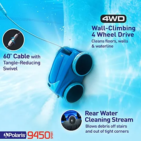 - AUTO POOL CLEANER: The 9450 Sport 4WD provides best-in-class cleaning performance and features. Complete cleaning experience in as little as 1.5 hours.