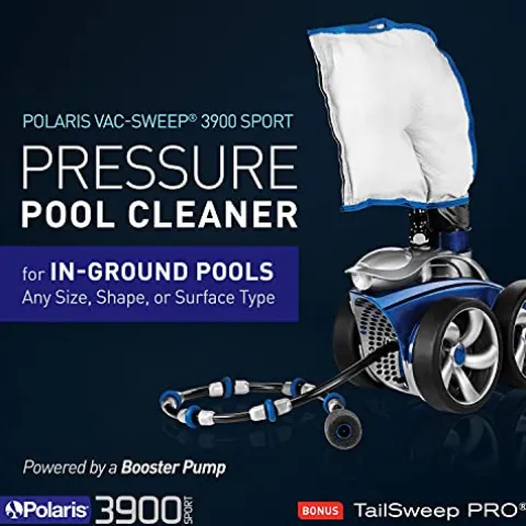 - WHAT’S INCLUDED: Polaris Vac Sweep 3900 Sport Pressure-Side Pool Cleaner, 31-feet of feed hose, 5 liter dual chamber superbag for capturing large amounts of debris, & Bonus TailSweep PRO accessory to prevent spraying of windows and walkways.
