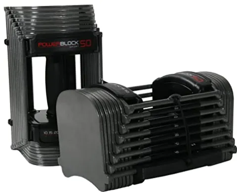 Enhance your strength training routine with the PowerBlock Sport 50 Adjustable Dumbbells. These durable steel dumbbells, sold in pairs, offer a weight range of 10-50 pounds per hand, making them perfect for various exercises. Featuring a compact and portable design, these innovative at-home workout equipment are easy to use and convenient to carry anywhere. With easy and quick adjustability using a secure magnetic pin, these dumbbells are built to last for years of use and come with a 5-year warranty. Say goodbye to cluttered workout spaces as these all-in-one exercise dumbbells replace 8 pairs of traditional dumbbells, providing a space-saving solution for your strength training needs.