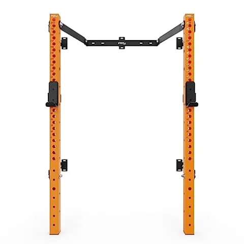 - PATENTED DESIGN: PRx Performance Profile squat racks are a patented design. We are the only manufacture of the fold up squat rack design. Gas shocks located in on each 4 pivot points allows this wall mounted squat rack to be folding up and down with ease. Included is a safety pin to lock the rack in the up position.