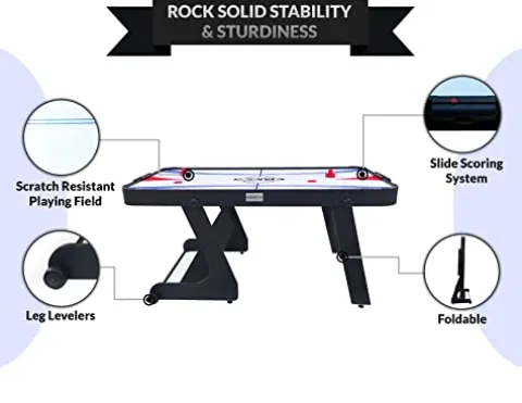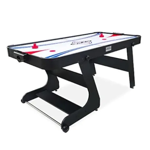 Experience endless fun and excitement with the PUCK Eros 5.5-Foot Folding Air Hockey Table in sleek Jet Black. This superior quality air hockey table is perfectly sized at 66β³ L x 34β³ W x 32β³ H, making it ideal for game rooms, family rooms, and even garages. Weighing only 65 lbs, itβs lightweight yet heavy-duty, ensuring durability and portability. The table comes complete with 4 premium air hockey strikers, 4 premium pucks, and a convenient carrying bag for easy transport. Perfect for beginners and intermediates alike, this table is designed for the whole family to enjoy. Plus, with an unlimited lifetime warranty, you can enjoy endless matches worry-free.