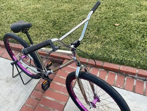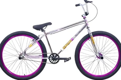 Get ready to turn heads with the R4 Pro 26 Inch Wheelie BMX Bicycle featuring a stunning retro look and looptail design. This adult/youth bike in chrome with purple wheels is not just about style – it’s packed with features to elevate your riding experience. From the 4 included pegs for stunts to the unisex design, this bike is built for quality workmanship and performance. With 2.20 tires and a manageable weight of 29 lb, the R4 Pro BMX Bicycle is the perfect choice for those who appreciate both style and substance in their ride.
