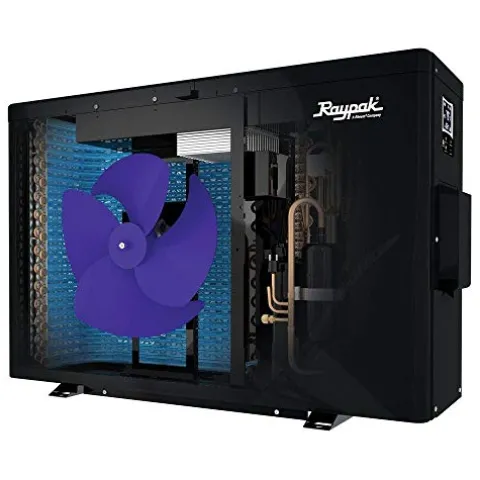 - Inverter compressor coupled with a low-speed fan motor for a serene pool and spa environment