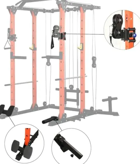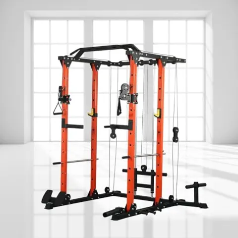 - [Sturdy Frame] Combining a weight cage, deep squat rack, and cable crossover, our fitness equipment is built with a sturdy frame using high tensile strength steel cable and high-quality pulleys. This ensures smooth operation and allows for a full-body workout without the need to switch between workout stations. The upgraded steel also provides increased stability.