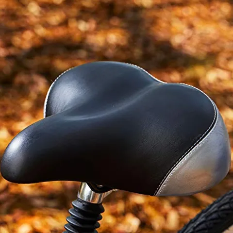 - Premium, richly padded saddle, with dual springs, is ergonomically designed for real comfort; it has a rear reflector for streamlined look; soft Kraton grips feel great; comfortable pedals maintain a responsive feel no matter how long you ride