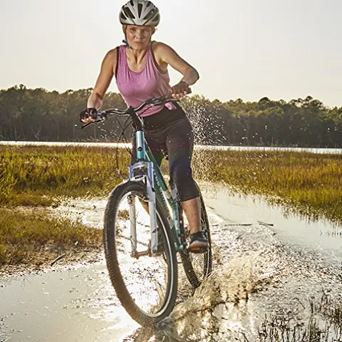 - 27.5 inch wheels maintain rolling momentum; all-terrain tread provides less rolling resistance than typical mountain bike tires; padded saddle can be easily adjusted for the right fit; slight-rise handlebar enables more upright riding posture