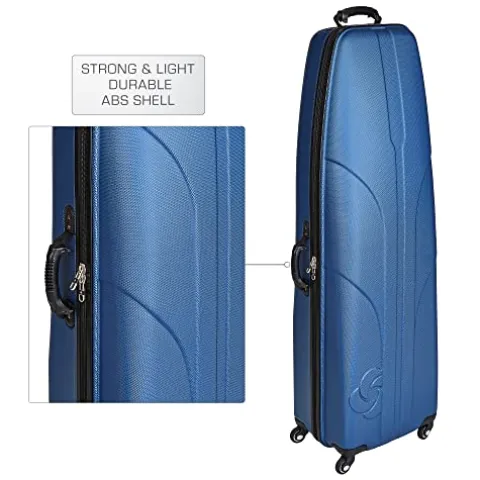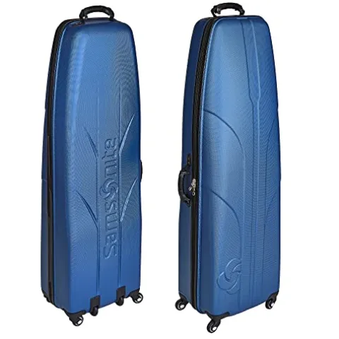 The Samsonite Golf Hard-Sided Travel Cover Case in Blue offers a blend of durability and style for your golf travel needs. Its super strong yet lightweight ABS shell ensures protection for your gear while maintaining an attractive appearance. This case accommodates longer 48″ clubs and 10.5″ bags with ease. The four multi-directional “spinner” wheels provide effortless gliding, making it simple to push or pull. Additionally, internal compression straps securely hold your golf bag in place during transit. Travel with peace of mind knowing your golf essentials are well-protected in this reliable Samsonite travel cover.