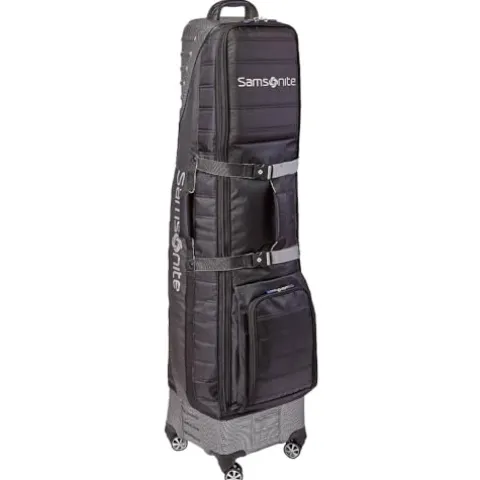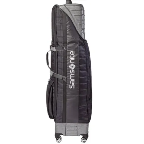 Transport your golf gear with ease and peace of mind using the Samsonite Golf Hard Top Golf Travel Cover. This durable travel cover features a hard side top that fully protects your club heads, while also accommodating longer 48″ clubs and 10.5″ bags, including longer length drivers. The revolutionary high-performance Shark Wheels ensure smooth rolling across any surface, making it effortless to maneuver. The padded interiors with luxurious lining provide a secure and cushioned space for your valuable clubs. With convenient comfort handles at the top and side, this travel cover is perfect for easy transport at the airport or in the trunk of your car. Travel confidently knowing that your golf equipment is well-protected and easy to carry wherever your golfing adventures take you.
