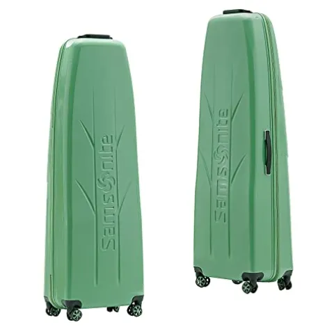 Transport your golf gear in style and security with the Samsonite Primo Deluxe Hard Sided Golf Travel Cover in Alpine Green. Crafted by Samsonite, this travel cover features a durable yet lightweight polycarbon shell, providing ultimate strength without the added weight. Designed to hold up to 48” clubs and 10.5” bags, your gear will stay protected during travel. Maneuvering through busy airports is a breeze with four multi-directional spinner wheels, while two comfort grip handles ensure easy transportation. The sleek and stylish design adds sophistication to your golf travel gear, and internal compression straps keep everything securely in place. Travel with ease and peace of mind with this high-quality golf travel cover.