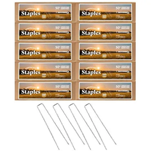 - #1 BEST SELLING BRAND: Sandbaggy landscape staples can be found securing landscape fabric & irrigation piping on job sites, national parks, and airports across America. That’s why we are the #1 best selling brand of landscape staples on the Internet, with over 25 million Sandbaggy landscape staples installed across this great country.