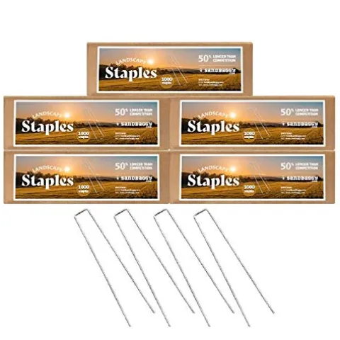 - #1 BEST SELLING BRAND: Sandbaggy landscape staples can be found securing landscape fabric & irrigation piping on job sites, national parks, and airports across America. That’s why we are the #1 best selling brand of landscape staples on the Internet, with over 25 million Sandbaggy landscape staples installed across this great country.