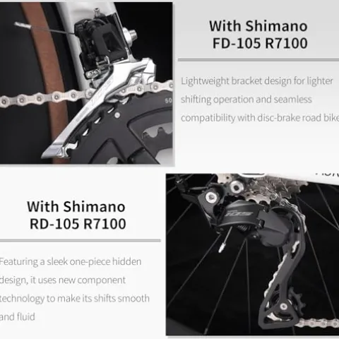 - 【With Shimano R7120 Precision Shift Groupset】Dis Brake Road bicycle with R7120 2*12 Speeds with Shifter lever, R7100 Front derailleur, R7100 Rear derailleur , It enables you to start and operate your ride effectively, smooth shifting and durable.The best choice for Race cyclists.