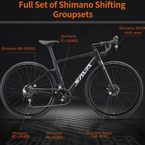 - 【With SHIMANO GRX400 Shifting Groupset】 Includes SHIMANO GRX shift lever, front derailleur and rear derailleur. SHIMANO GRX600 Crankset 2*10speeds,SHIMANO Flywheel 11-34T, The outstanding design and technology of the SHIMANO GRX front derailleur system give you full control over every aspect of your ride to make it more efficient and enjoyable than ever!