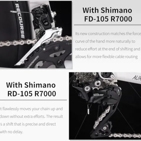 - Complete with Shimano R7000 Shift Groupset:Dis Brake Road bicycle Complete with SHIMANO R7000 2*11 Speeds with Shifter lever, Front derailleur, Rear derailleur- It enables you to start and operate your ride effectively, smooth shifting and durable.The best choice for Race cyclists.