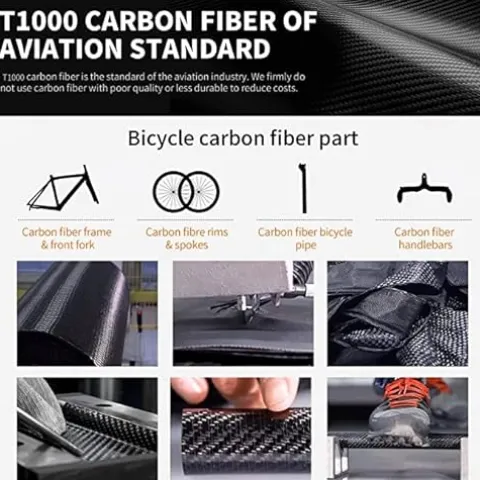 - 🚴【FULL CARBON FIBER DESIGN】- This Road Bicycle features a high carbonization design and is made of aerospace-grade carbon fiber materials, dexterous & high-intensity. Professional high-quality T1000 Carbon Fiber Frame, Fork, Handlebar, Seat post, and Wheelset. This is a lightweight and stiff carbon road bike for adults only 6.6kg(14.56LB).