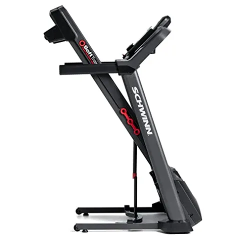 Enhance your fitness routine with the Schwinn Fitness 810 Treadmill in sleek black. Featuring a wide array of advanced functionalities, this portable treadmill offers a 20-inch by 55-inch running path with a SoftTrak Cushioning System for a comfortable run. With a 10 percent motorized incline and speeds up to 10 MPH, you can customize your workout to your preferences. The treadmill boasts a Blue backlit LCD display with 16 workout programs and 2 user profiles, as well as integrated heart rate contact grips for monitoring your progress. The SoftDrop folding technology allows for easy storage, and the charging USB port keeps your devices powered during workouts. Explore global routes with the Explore the World subscription, and enjoy a maximum user weight capacity of 275 lbs. Backed by a comprehensive warranty, including 10 years on the motor and frame, 1 year on mechanical and electrical components, and 1 year on labor, the Schwinn Fitness 810 Treadmill is a reliable and versatile addition to your home gym.