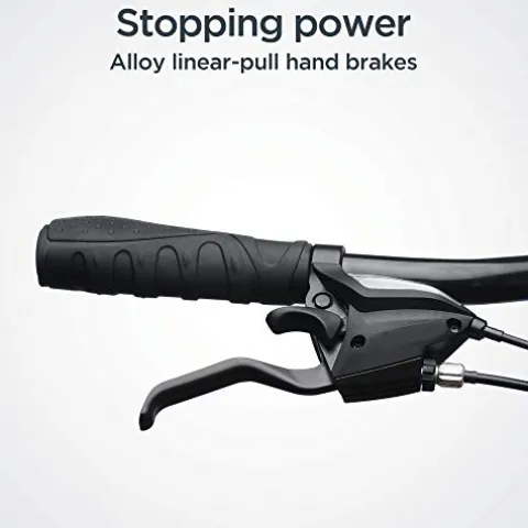 - Superior stopping power with alloy linear pull brakes, and strong and lightweight alloy rims