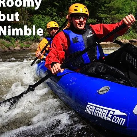 Experience the ultimate adventure on the water with the Sea Eagle 420x Inflatable Kayak with Pro Package. This versatile kayak by Sea Eagle is perfect for 2-3 adults or a maximum weight of 855 lbs. Constructed with durable 1000 Denier reinforced material and overlapped seams, it ensures reliability and safety on the water. The kayak inflates in just 9 minutes, making it quick and easy to set up for your next excursion. Designed for whitewater up to Class IV, this kayak is ready to tackle any challenge. The Pro Package includes essential accessories such as two 8′ AB40 paddles, TBS tall back seats, a kayak carry bag, stow bags, hand pump, skeg, repair kit, and instructions, providing everything you need for an unforgettable kayaking experience.