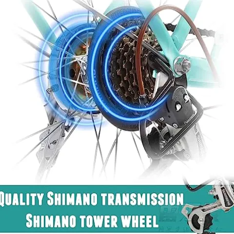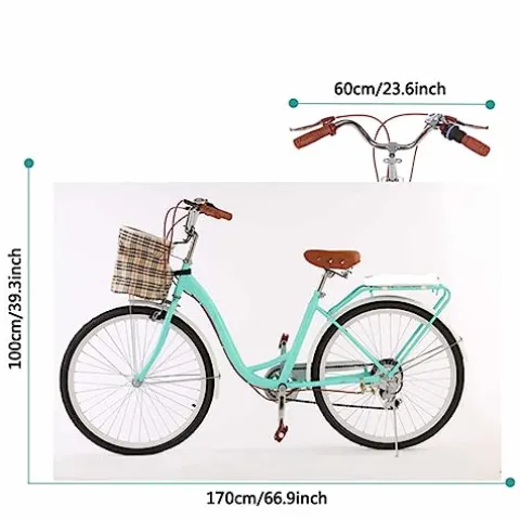 The ShangWen Women Beach Cruiser Bike is a versatile 7-speed hybrid bicycle suitable for both men and women. This adult 26-inch city bicycle, in a stylish GN color, features a sturdy hi-tensile iron frame that ensures a smooth ride over urban terrains. With its 7-speed drivetrain and twist shifters, it offers ample range to tackle various inclines effortlessly. The ergonomic seat and grips provide exceptional comfort for short jaunts or longer rides. Ideal for casual outdoor excursions or daily commuting, this classic comfort bike boasts a durable carbon steel frame and easy assembly, making it a practical and enjoyable choice for leisurely rides in the neighborhood.