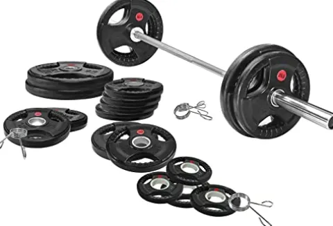 - 325 pounds set: 1x 7 feet Olympic Barbell (45 lbs), 4x 2.5lb, 4x 5lb, 4x 10lb, 2x 25lb, 2x 35lb, 2x 45lb cast iron plates