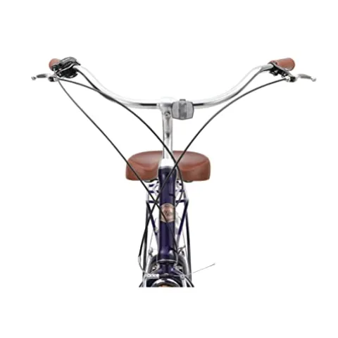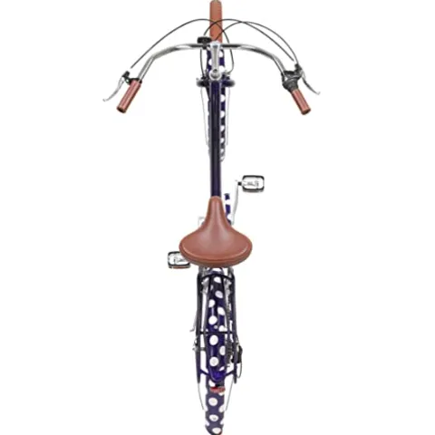 The sixthreezero A/O Frida Limited 7-Speed Step-Through Touring Hybrid Bicycle in Navy & White Spots is a versatile hybrid bike designed for women. With its 17.5-inch swooping step-through aluminum frame, this bike is perfect for leisurely cruises, daily commutes, and varied terrain rides. The comfortable and ergonomic design includes a soft foam seat, ergonomic handlebar grips, and an upright riding position to keep you comfortable on the go. Its 7-speed internal hub allows for easy handling of longer distances and moderate hills, while the front handbrake and rear coaster brake ensure precise stops. This stylish bike features a dual-spring saddle, matching fenders, and a rear rack for optional accessories. The quality whitewall semi-slick tires provide a stable and cushioned ride, making it a perfect choice for any cycling adventure.