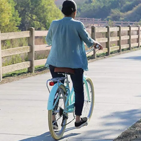 - 7-SPEED DESIGN: Beach cruiser bike features a 7-speed internal hub with an easy-to-use shifter, which enables you to handle longer distances and moderate hills; womens hybrid bike features a front handbrake and rear coaster brake to ensure precise stops