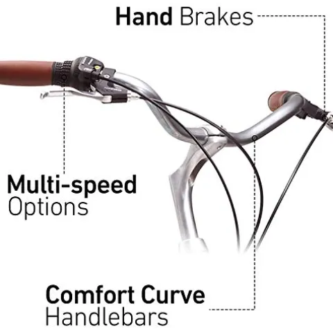 - 7-SPEED DESIGN: City bike features a 7-speed design with an easy-to-use shifter, which enables you to handle longer distances and moderate hills; women’s hybrid bike features front and rear hand brakes to ensure precise stops