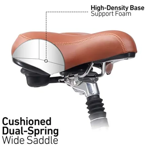 - Smooth cruiser configuration makes for smooth and easy pedaling; suspension seat post reduces vibrations for added comfort
