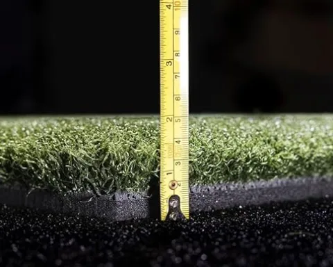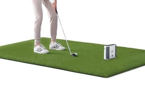 Elevate your golf practice with the SKYTRAK 7×4 Hitting Mat, designed to replicate the feel of a real fairway. Crafted from durable 32mm knitted nylon turf, this mat provides an authentic golfing experience, ensuring each swing feels as natural as on the course. The 3mm urethane stabilizing layer enhances stability, while the 14mm foam base offers superior comfort, reducing strain on joints during extended practice sessions. Ideal for both beginners and seasoned golfers, this green hitting mat combines durability and comfort, making it a perfect addition to any home or professional golf setup.